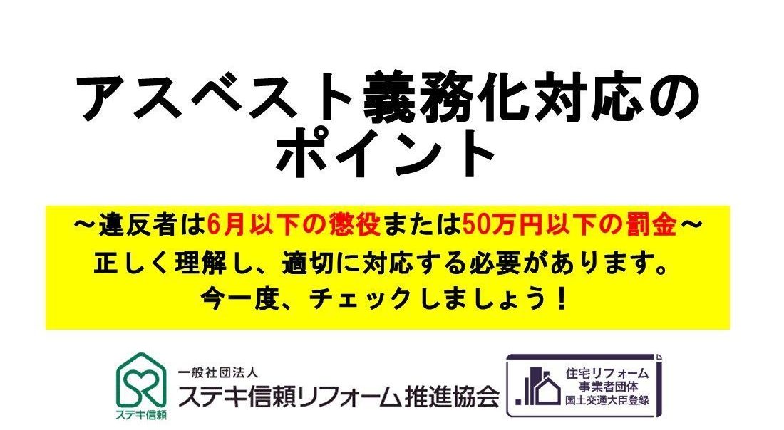 ニュース ダウンロード よくある質問 動画 会員特典・レンタル会員特典レンタル ALL(新着順) お施主様用 セミナー 耐震・防災 断熱・省エネ ペット 内装・インテリア ツール 【20231026更新】『アスベスト義務化対応のポイント』 ステキ信頼リフォーム推進協会動画資料 « PREV MOVIE NEXT MOVIE » お役たち動画一覧